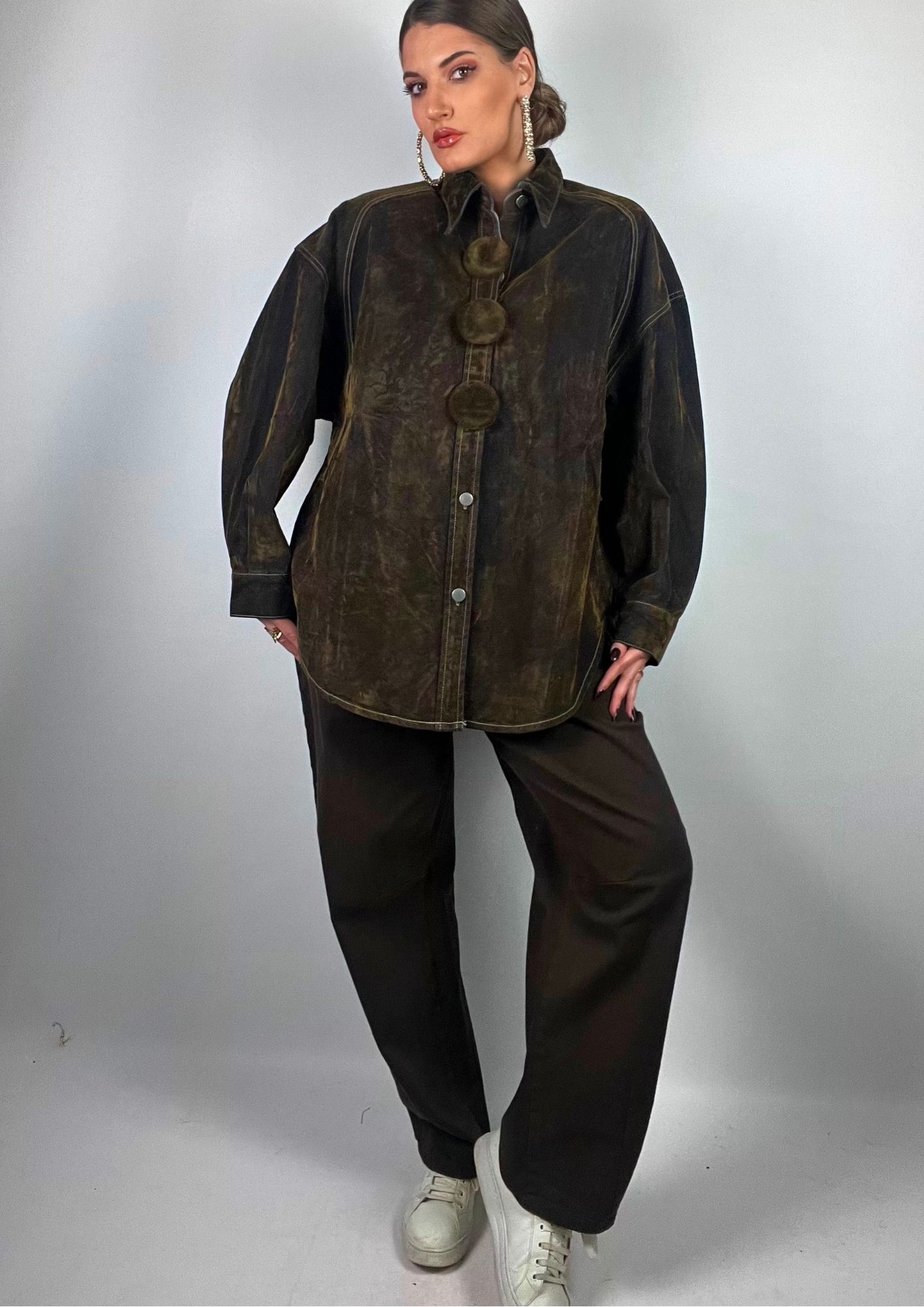 Giacca-camicia in velluto marrone